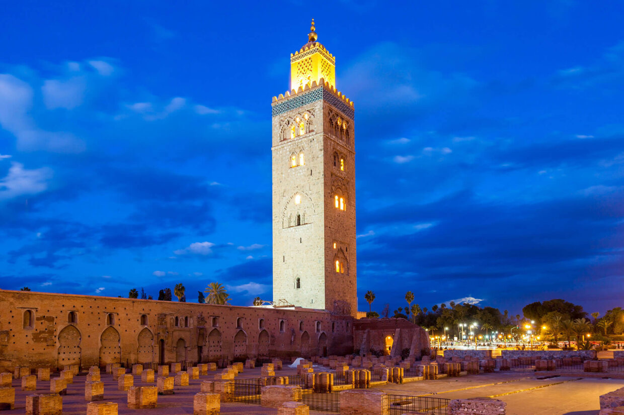 Marrakech Medina & Sights After breakfast, explore Marrakech’s medina with your guide. Visit Bahia Palace, the Ben Youssef Madrasa, the historic Jewish Mellah, Koutoubia Mosque, Le Jardin Secret, and Dar El Bacha Museum. Wander through the vibrant souks before enjoying dinner at a local restaurant.