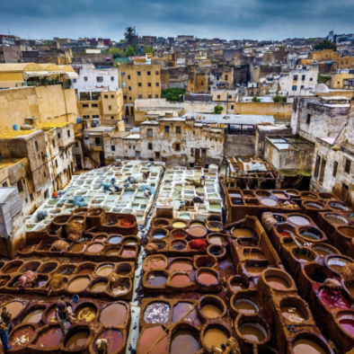 After breakfast, explore Fez with your local guide, in one of Morocco’s most historic and spiritual cities, founded in the 9th century. Discover the ancient medina, visit the historic Fez Mellah—the country’s first Jewish quarter—and the nearby Jewish cemetery, reflecting the city’s rich Jewish heritage. Continue to the iconic leather tanneries, renowned for their vibrant colours, and conclude the tour at the Merenid Tombs for a panoramic view over the city.